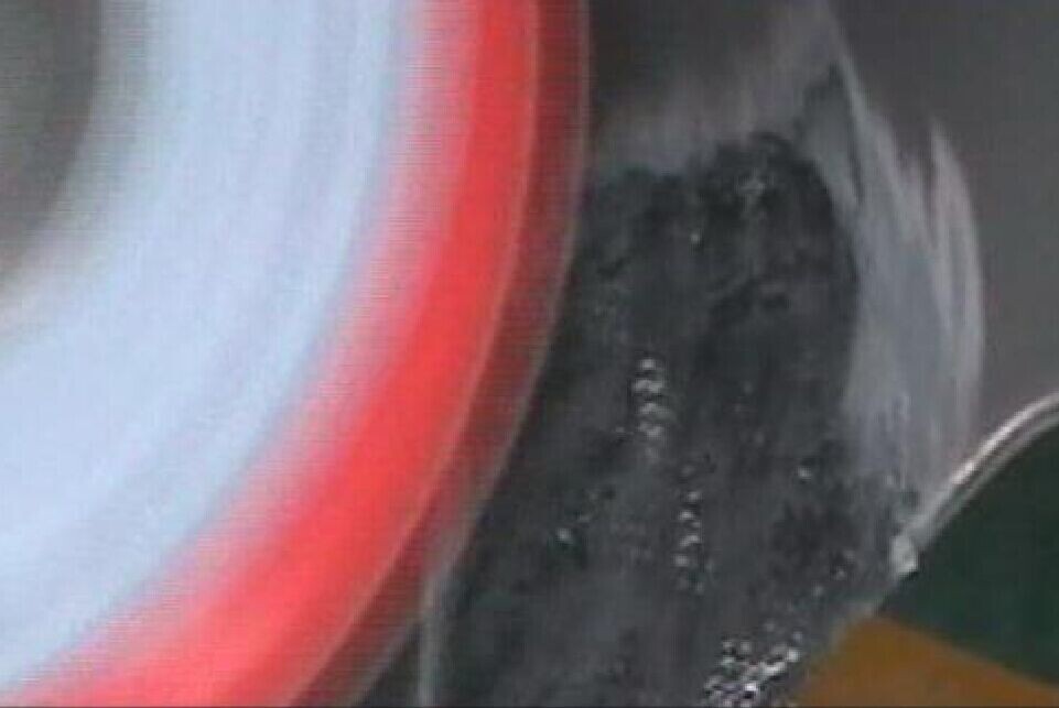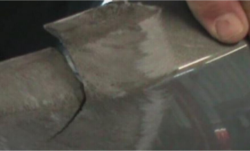 步驟8:等待熔膠干燥后,使用雙動打磨頭配120號砂紙,小心地對受損表面進行打磨,使其平整。打磨時,注意不要使無銹固網(wǎng)裸露,尤其對邊角的地方要特別注意,如圖1-8、圖1-9所示。