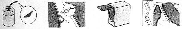 縫隙膠帶是一種遮蓋材料,用于在發(fā)動機罩或車門處,防止涂料透入縫隙??p隙膠帶為聚氨酯泡沫體,并加入粘合劑而制成,因此它簡化了有縫隙區(qū)域的遮蓋。它呈圓柱形,因此可以防止噴涂臺階,使涂裝的表面很容易打磨(如圖4-1-2)。